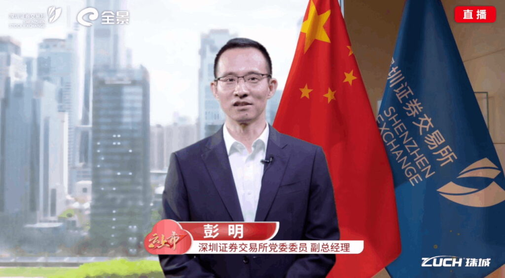 一直以來,深圳證券交易所都全力支持和推動珠城科技上市融資,并在強化公司治理,提升公司質量等方面提供了多維度的幫助。上市儀式現場,深圳證券交易所黨委委員、副總經理彭明通過遠程連線的方式給公司帶來最真摯的祝福。