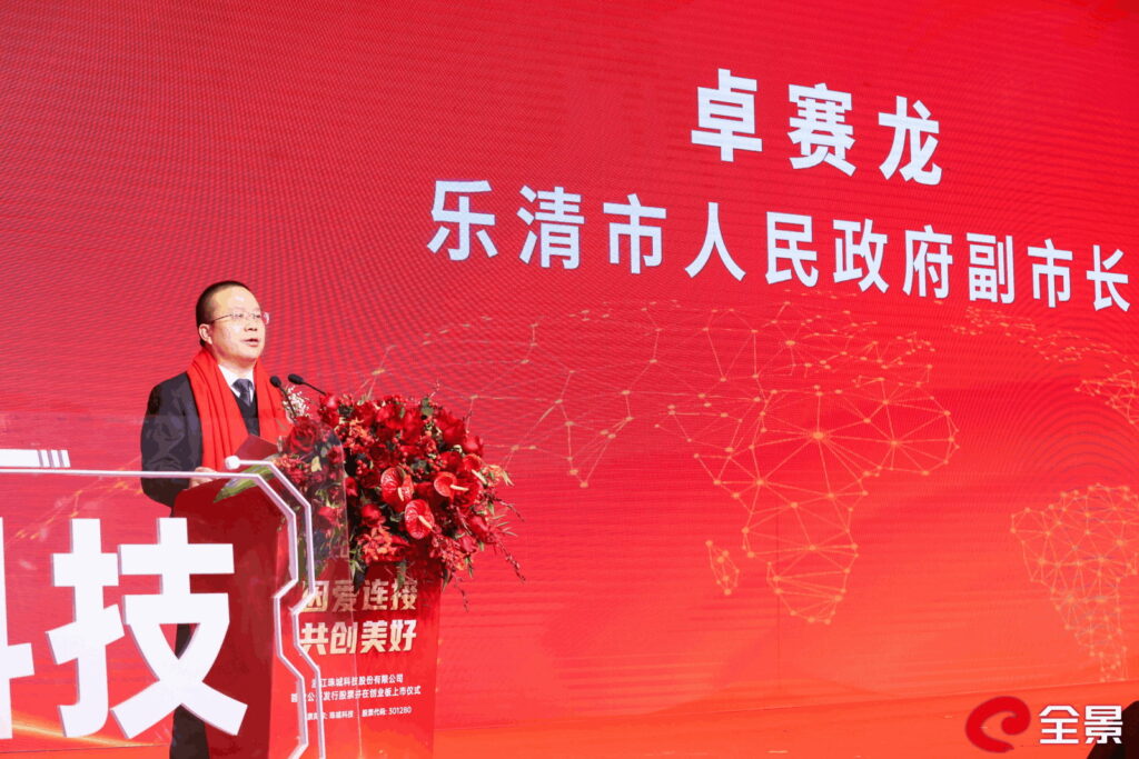 上市儀式現場,樂清市人民政府副市長卓賽龍表示,珠城科技上市這不僅是珠城科技企業發展的重要里程碑,也是我市企業上市的一件喜事、大事,還是樂清企業2022年搶登資本市場的又一碩果。樂清是中國民營經濟的主要發祥地,今年以來新增上市過會企業五家,全省動態排名第三名。算上今天上市的珠城科技,樂清上市公司總數已經達到15家。